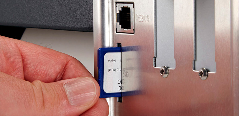 Достаточно вставить SD-карту памяти в рабочий принтер этикеток Printronix и запустить режим клонирования через меню управления.